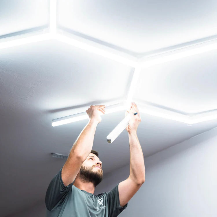 Les tubes d'éclairage et connecteurs plug and play ainsi que la construction légère facilitent la configuration de votre grille d'éclairage souhaitée et la fixation au plafond ou aux murs.